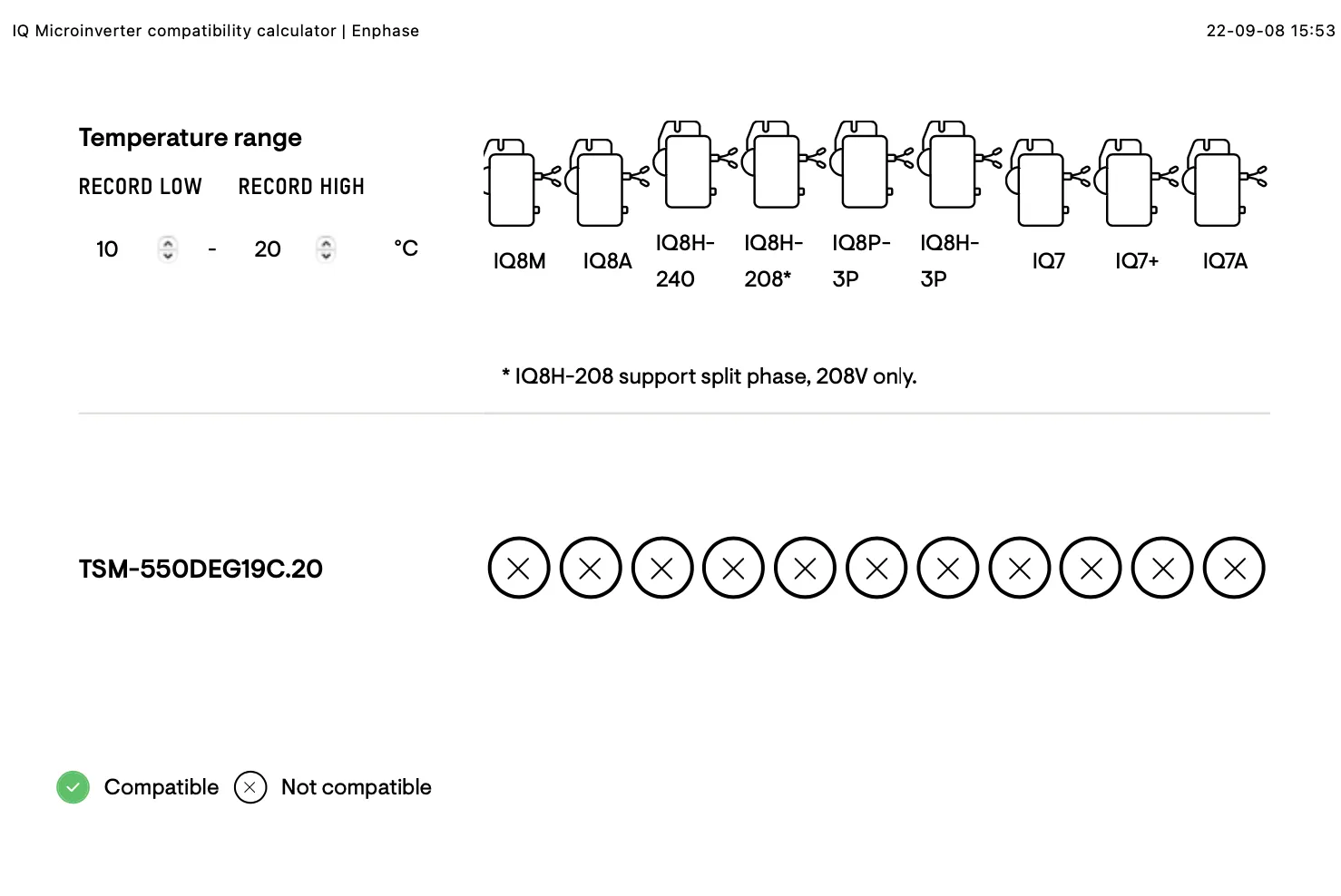 En el post pueden ustedes leer que Enphase no ofrecía compatibilidad con mis paneles solares y pues eso era cierto, esta es la imagen de hace 1 año: